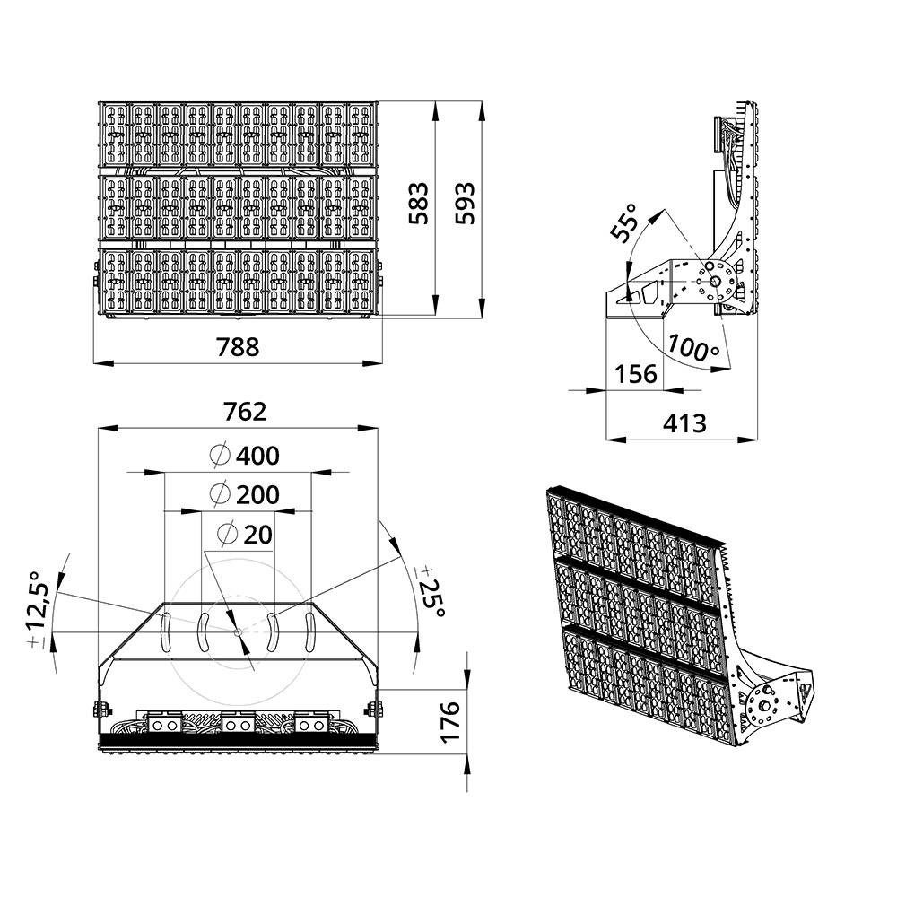 Прожекторы являются универсальными, их отличает высокая энергоэффективность – до 153 лм/Вт, а также большой набор оптики. Благодаря усовершенствованной конструкции приборы имеют компактные габариты и небольшой вес.