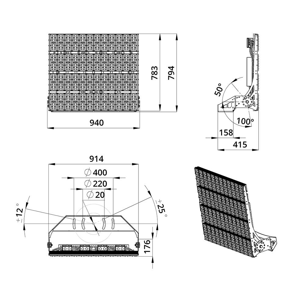 Прожекторы являются универсальными, их отличает высокая энергоэффективность – до 153 лм/Вт, а также большой набор оптики. Благодаря усовершенствованной конструкции приборы имеют компактные габариты и небольшой вес.