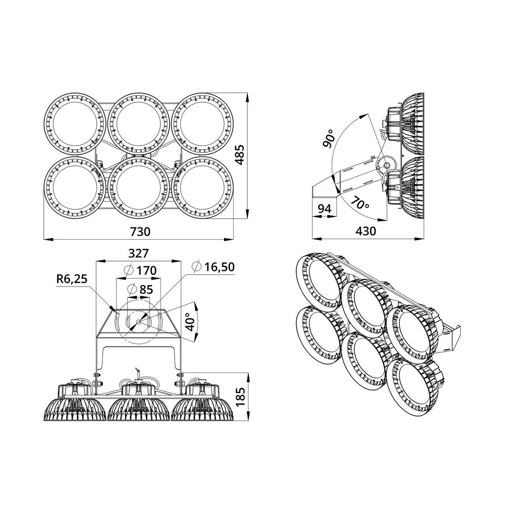 Осветительные приборы характеризуются высокой энергоэффективностью – до 172 лм/Вт и низкой стоимостью за люмен. Литой корпус из алюминия прочен и устойчив к неблагоприятным внешним факторам. Небольшой вес прожекторов существенно облегчает и ускоряет монтаж, а также уменьшает нагрузку на опорные конструкции.